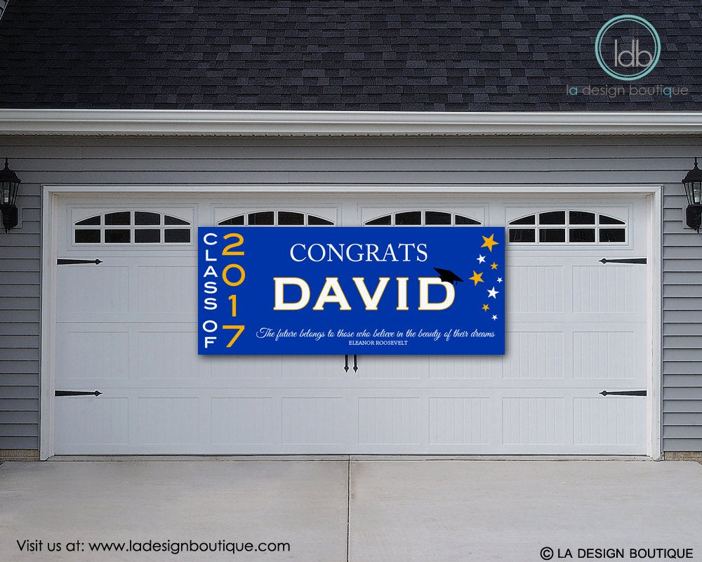 If you need a graduation banner then you need to start here. This banner sets the mood and helps to catch your guests attention and really honor the graduate! This is a completely personalized banner for your special graduate and can be customized how you like. From colors, to theme, to wording.