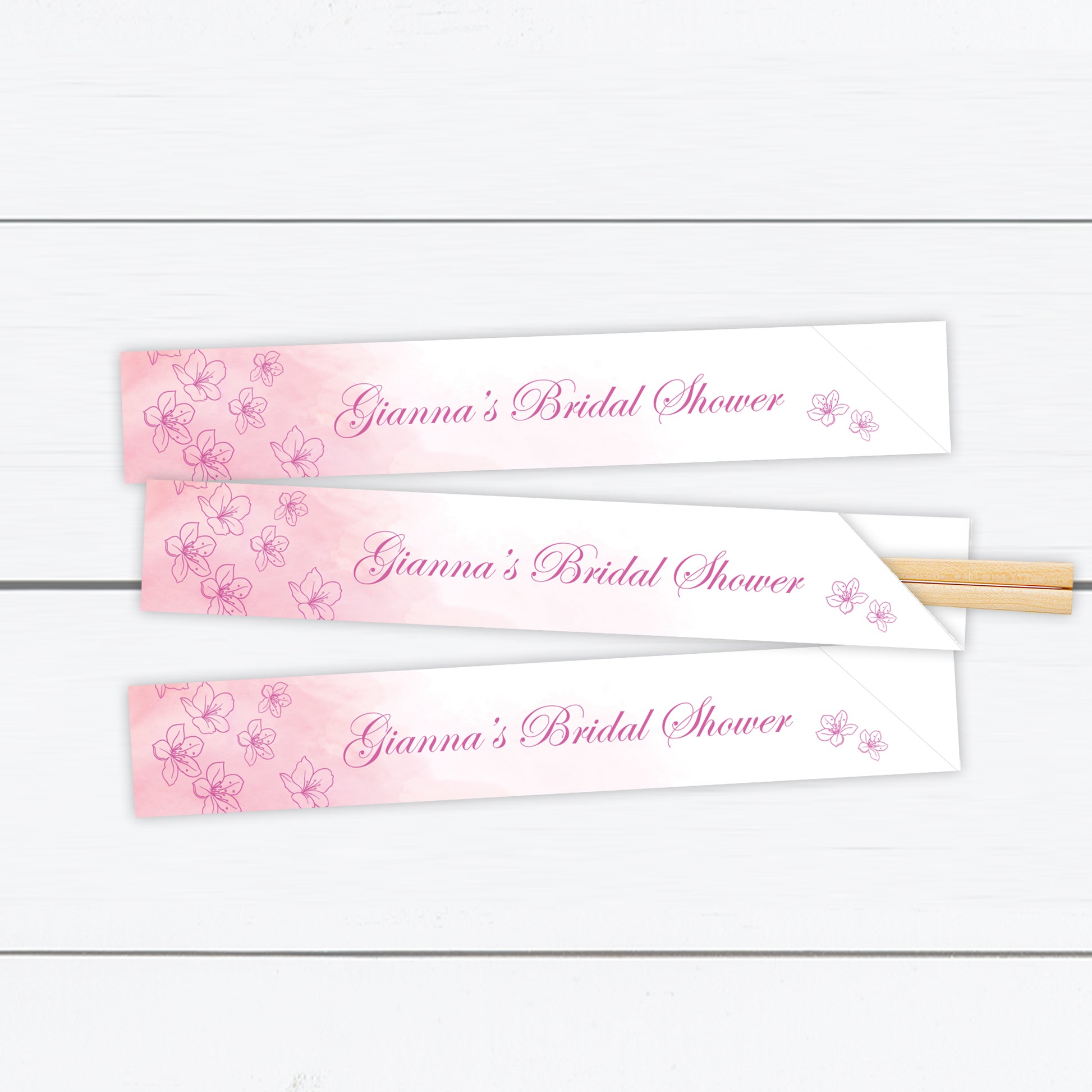 The sleeves are printed on 32lb premium white matte paper and measure 1.25"x7.5". You have the option to add on chopsticks or not.